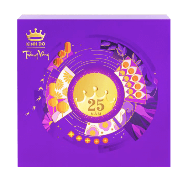 Dòng bánh Trăng Vàng Hồng Ngọc An Bình lấy cảm hứng tư bữa tiệc hoàng gia, với hình ảnh họa tiết hoa văn mây lành triều Nguyễn trên nắp hộp, tượng trưng cho lời chúc một mùa trung thu bình an, hạnh phúc.